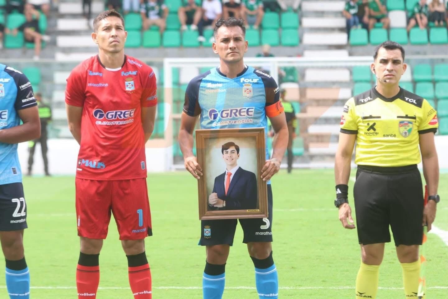 El plantel de Blooming ingresó al campo de juego portando una fotografía del joven, reconocido hincha del club celeste y estudiante de Derecho en la Universidad Autónoma Gabriel René Moreno (UAGRM). El gesto fue acompañado por un respetuoso silencio que unió a jugadores e hinchadas en señal de duelo.